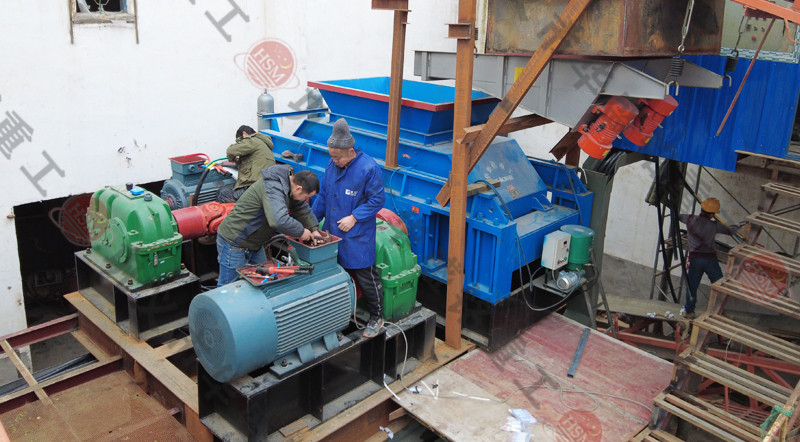 全液壓對(duì)輥破碎機(jī)山西制砂現(xiàn)場(chǎng)